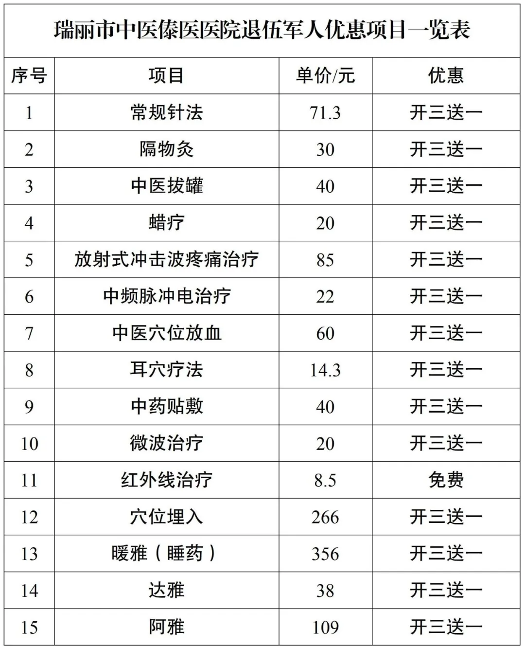 4、 拥军中医服务项目: