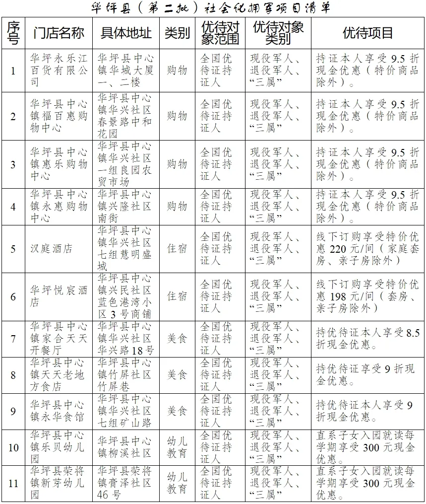 部分优待清单
