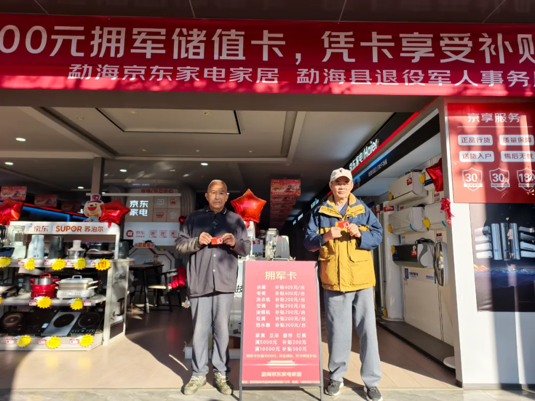 近日,勐海县爱心企业齐家家居贸易有限公司(勐海京东家电家居)主动践行社会责任,面向勐海县现役军人及退役军人推出专项家电补贴基金卡(“拥军储值卡”),共计500张,每张储值3000元。持卡人在该门店购买家电、家居产品时,可在市场最低零售价基础上,享受单件产品200元至500元不等的额外补贴。现役军人凭有效证件、退役军人凭优待证即可到店领取储值卡,并享受相应优惠,让尊崇与实惠直达心坎。