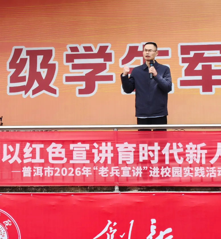 1月9日上午,普洱市“老兵宣讲”2026年第一场走进普洱学院。此次宣讲特别邀请“老兵宣讲团”成员李卫国宣讲党的二十届四中全会精神,以《中国国防与青年担当》为题,为2025级全体参训学生带来了一场兼具家国情怀与实战感悟的国防教育盛宴。李卫国深耕国防教育领域多年,任云南省高校军事教学指导委员会副主任委员、云南省中小学国防教育指导委员会副主任委员,凭借丰富的军旅经历和深厚的国防认知,成为青年学生身边的“国防引路人”。