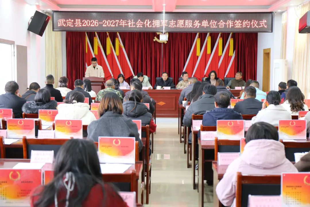 近日,武定县举行社会化拥军志愿服务单位签约授牌仪式,与涵盖医疗、教育、餐饮、法律等多个领域的单位签订合作协议,其中续签24家、新签27家,进一步拓展了社会化拥军网络。