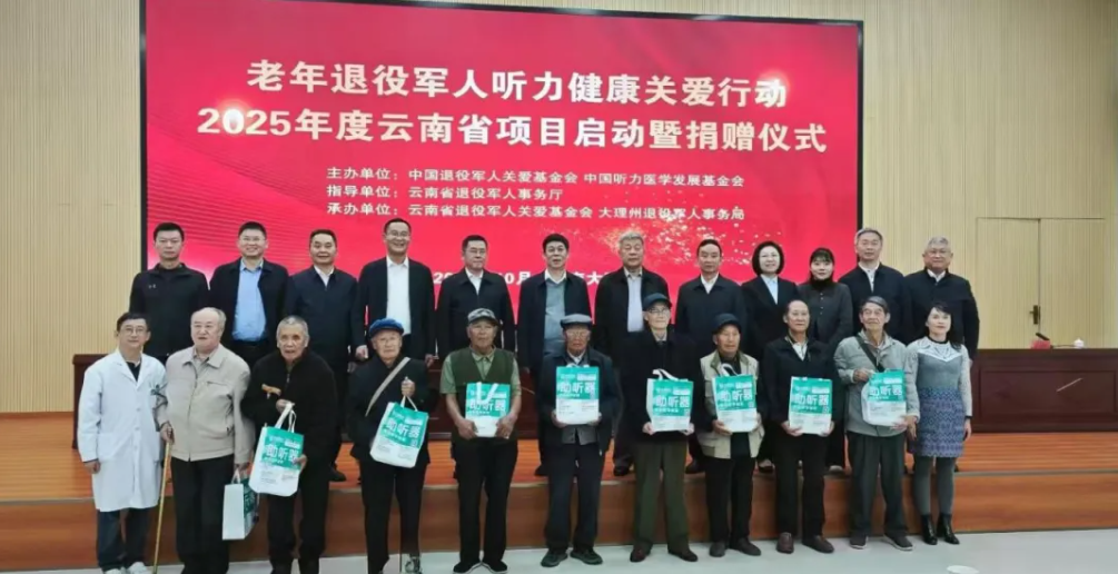 2025年10月24日,大理举行专场捐赠仪式,中国退役军人关爱基金会、中国听力医学发展基金会等单位发起的关爱行动,向云南捐赠价值268万元的助听器,专项帮扶大理州、怒江州100名老年退役军人和优抚对象。此次捐赠并非简单物资发放,而是采用“筛查—验配—跟踪”全流程服务模式,实现“一对一”精准对接。现场,相关单位还为验配师颁发志愿者证书、为大理州医院主任医师颁发专家证书,保障服务专业性。