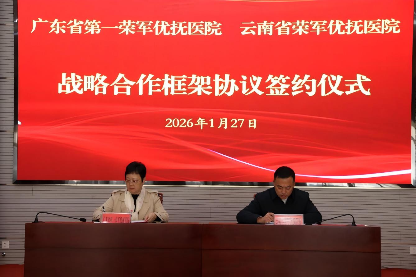 1月27日,广东省第一荣军优抚医院与云南省荣军优抚医院在昆明签署战略合作框架协议。广东省第一荣军优抚医院院长曾嵘,广东省第一荣军优抚医院纪委书记梁超,云南省荣军优抚医院党总支书记、院长田骁参加签约仪式。