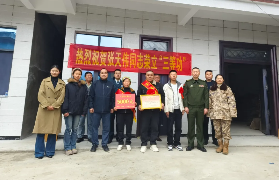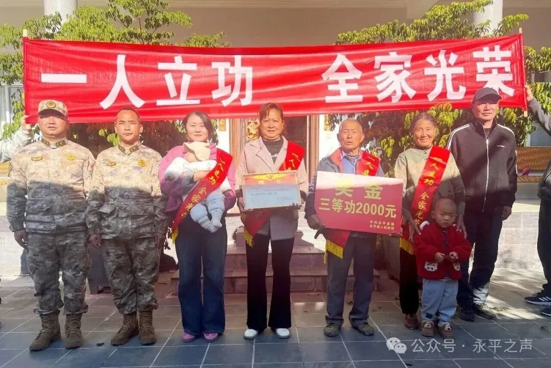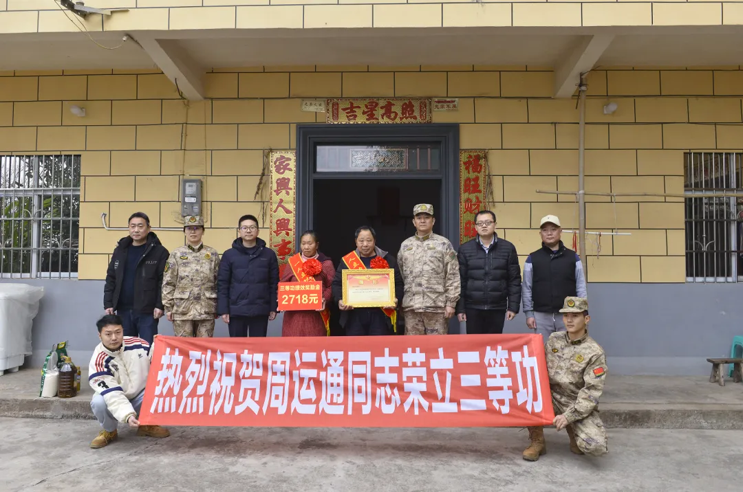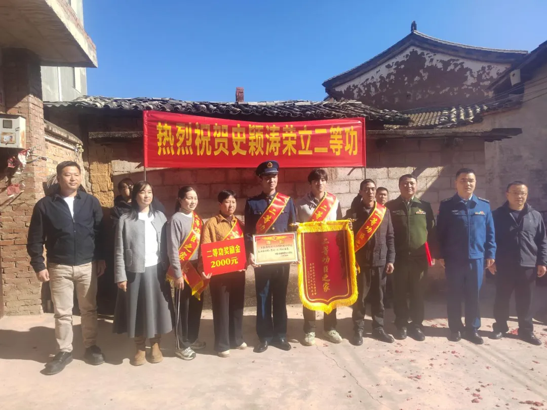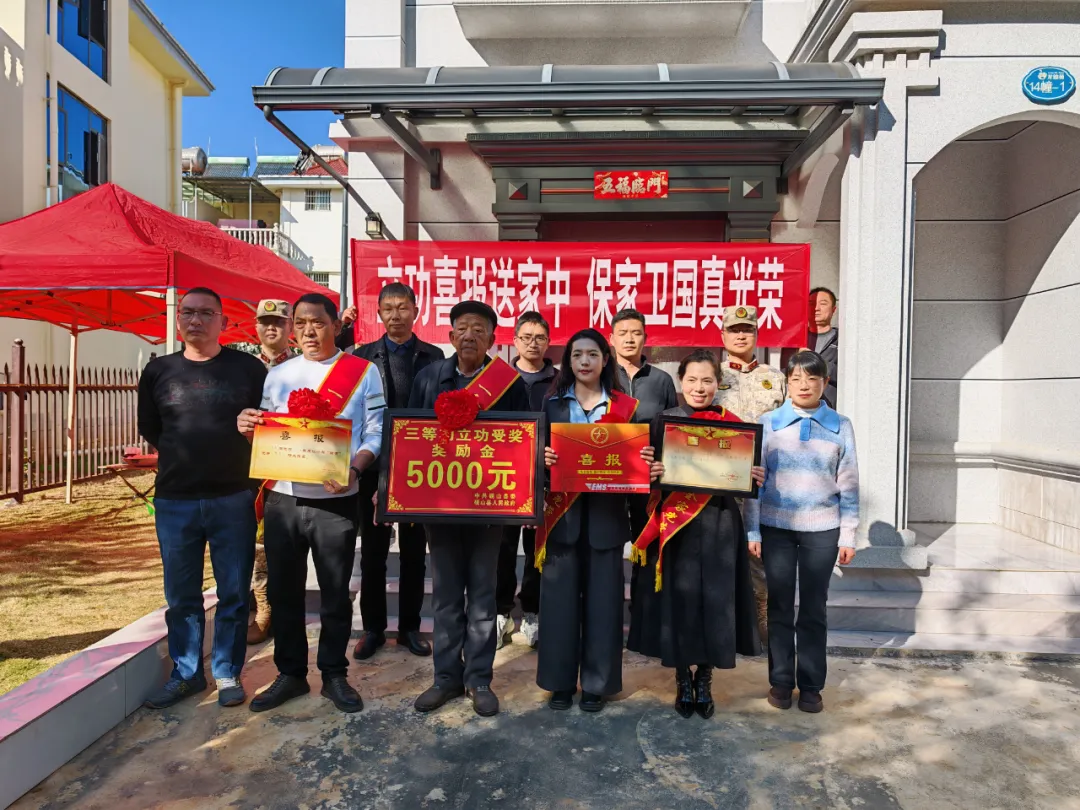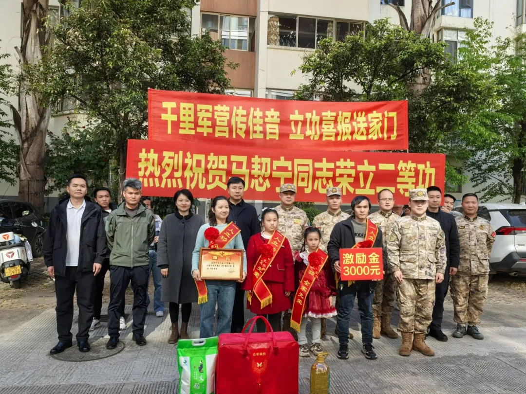 弥勒市人武部、市退役军人事务局等组成慰问组,先后为1名荣立二等功和5名荣立三等功的现役军人家属送上喜报及慰问金,将党和政府的关怀与社会各界的尊崇送到军属心坎上,共同见证这份“一人立功、全家光荣”的荣耀时刻。