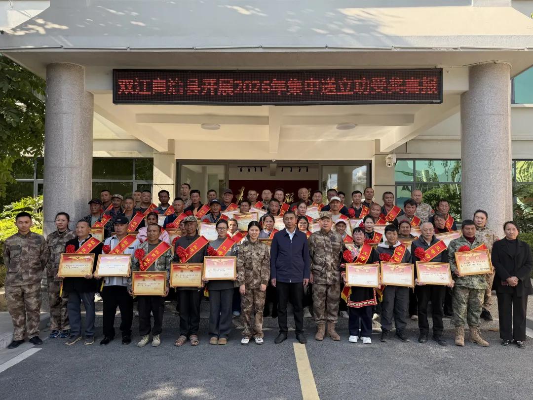 双江自治县开展2026年集中送立功受奖喜报仪式,将部队传来的荣誉郑重送到军人家庭手中。此次共为49个现役军人家庭集中送喜报,其中三等功家庭6个、“四有优秀士兵”家庭43个。