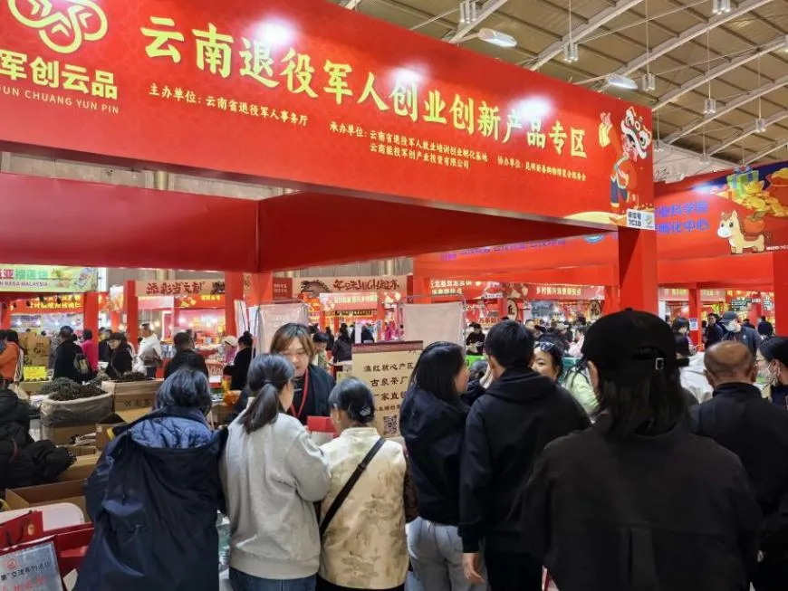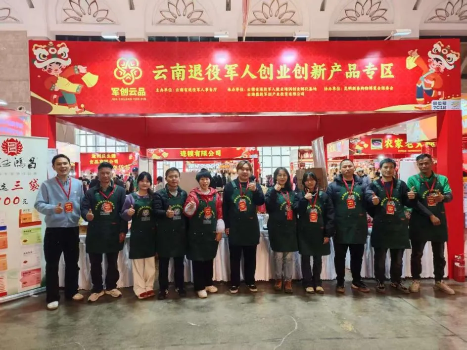 在展会名特优企业展区中,以 “军创云品” 为统一标识的云南退役军人创业创新产品专区成为一大亮点。该专区由云南省退役军人事务厅主办,云南省退役军人就业培训创业孵化基地、云南能投军创产业投资有限公司承办,昆明新春购物博览会组委会协办,旨在集中展示退役军人创业企业优质产品,做强 “军创云品” 区域公用品牌,推动退役军人创业创新成果市场化转化。