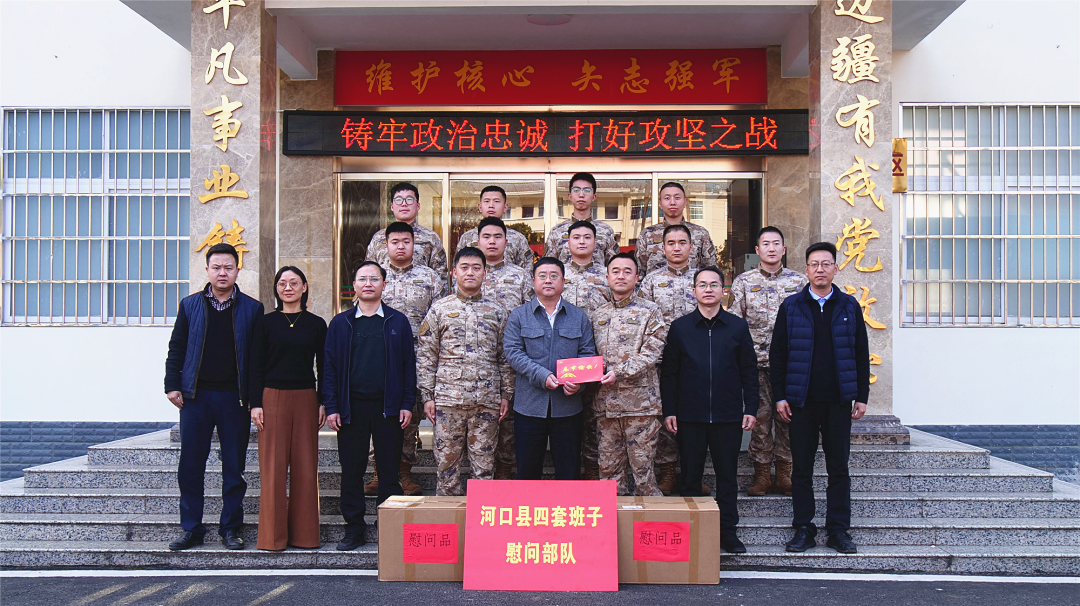 河口县组成慰问组走访慰问驻边部队,向坚守岗位的官兵致以新春祝福,感谢他们为强边固防和地方发展作出的贡献。部队官兵表示,将继续苦练本领,为维护边境稳定与社会和谐贡献力量。军民携手,共叙鱼水深情。