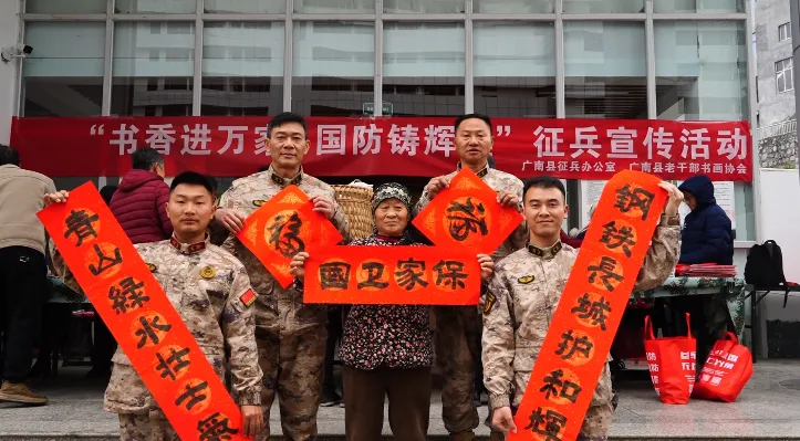 近日,广南县将新春送春联与国防教育、征兵宣传相结合,组织书写并赠送“军味”春联200余副,发放宣传材料500余份。活动以笔墨传递祝福,面对面讲解政策,有效营造了崇军尚武的社会氛围,激发了适龄青年的参军热情。