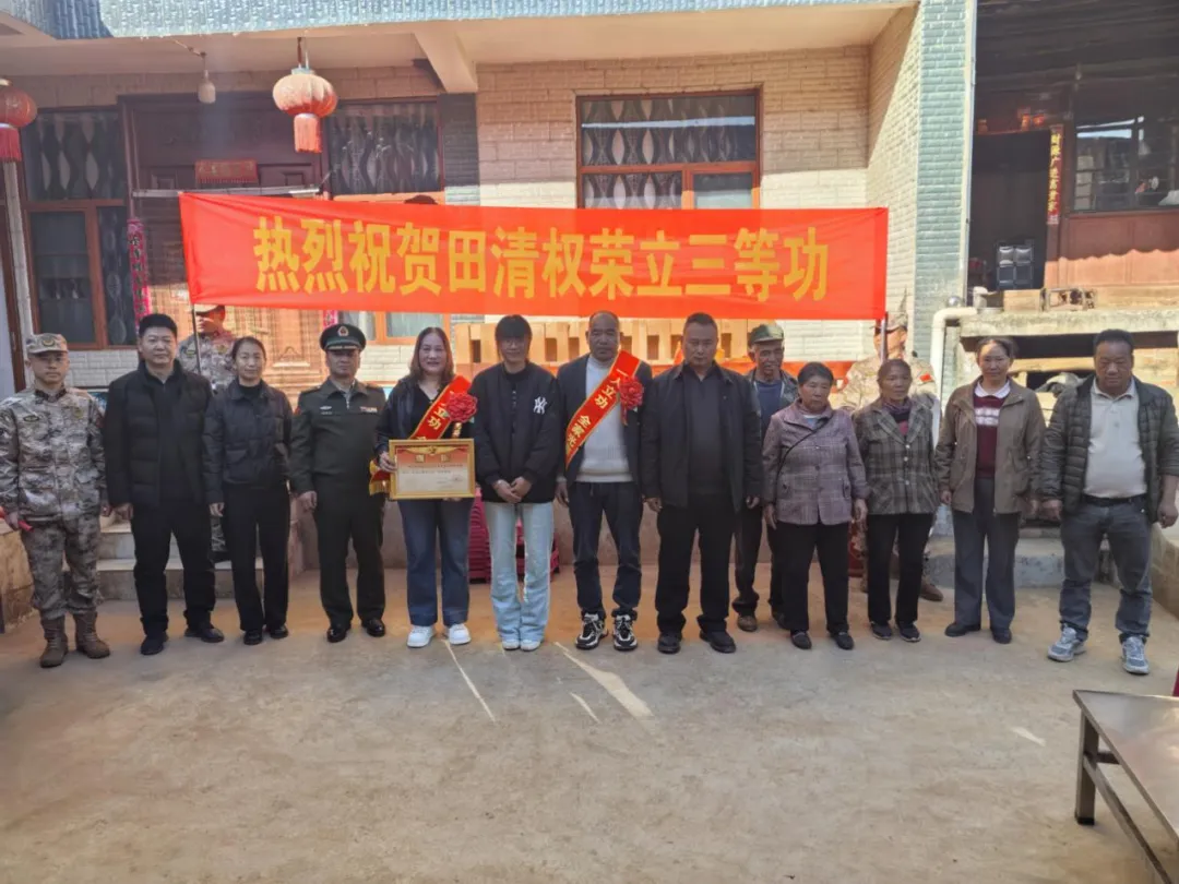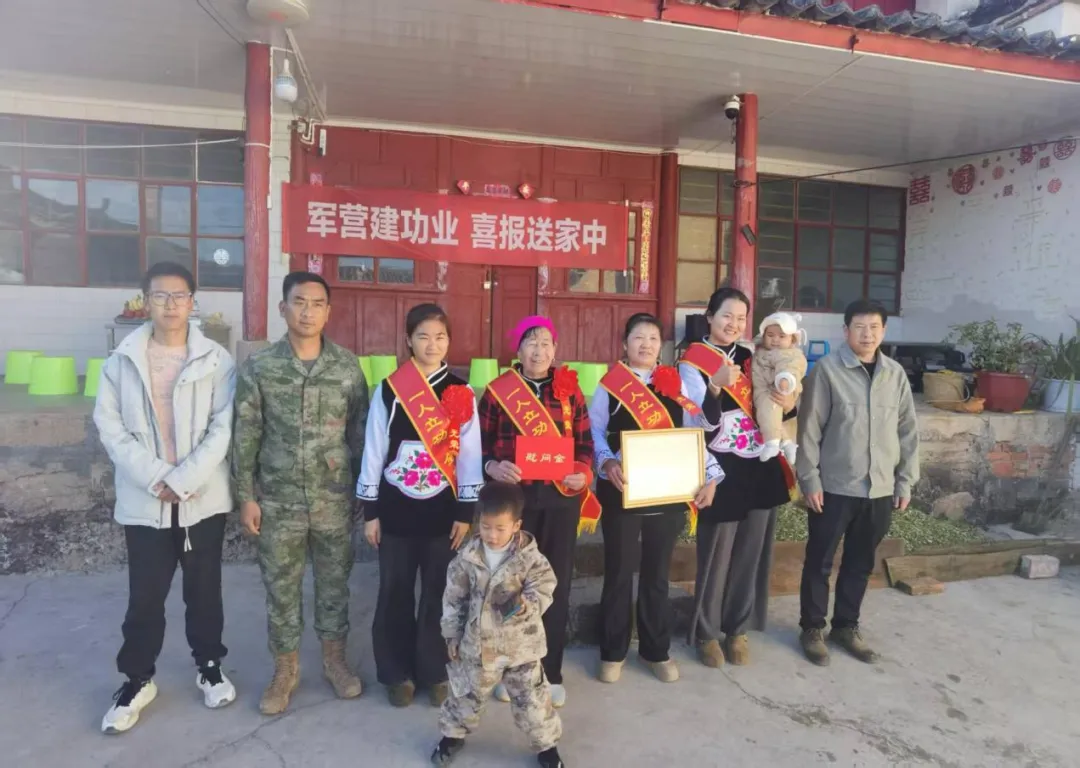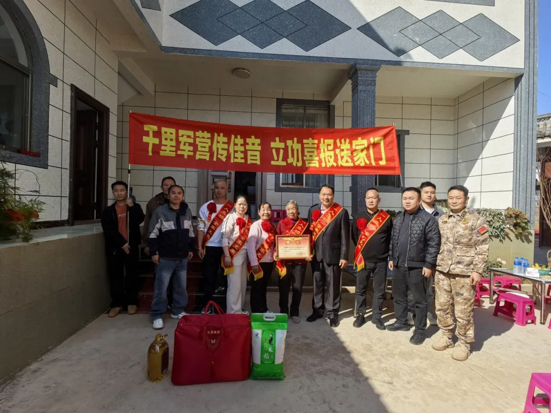 弥勒市退役军人事务局、市人武部及相关乡镇(街道)组成的联合送喜报队伍,将承载着荣誉的三等功喜报,分别送到了5位弥勒籍现役军人的家中,把部队的祝贺和地方的关怀直接送到军属心坎上。