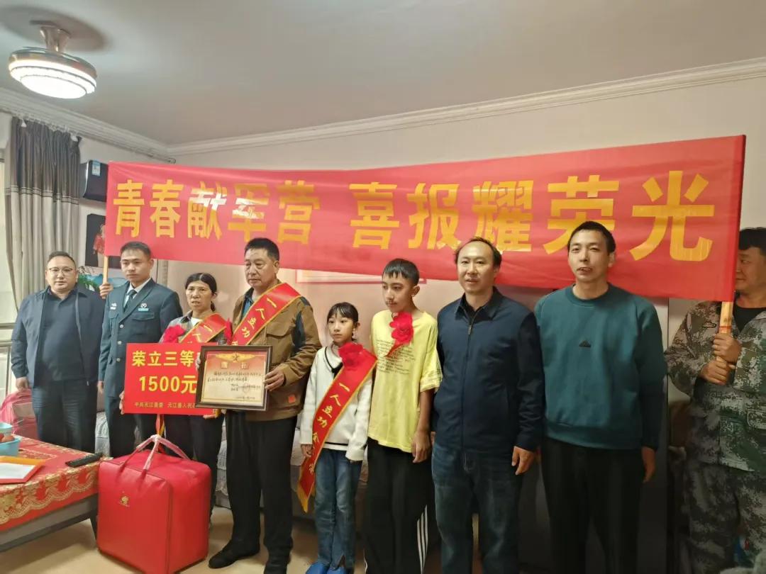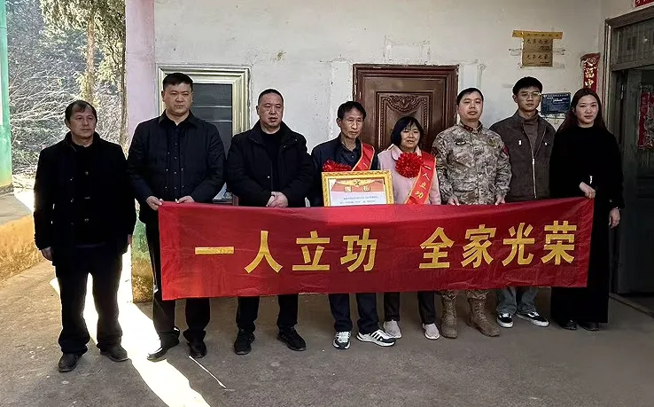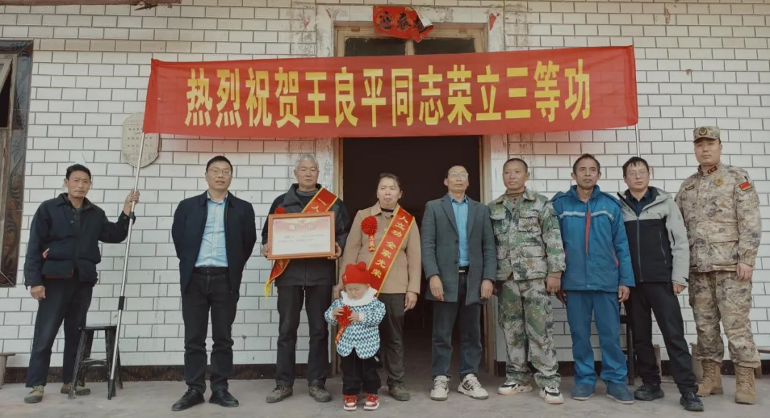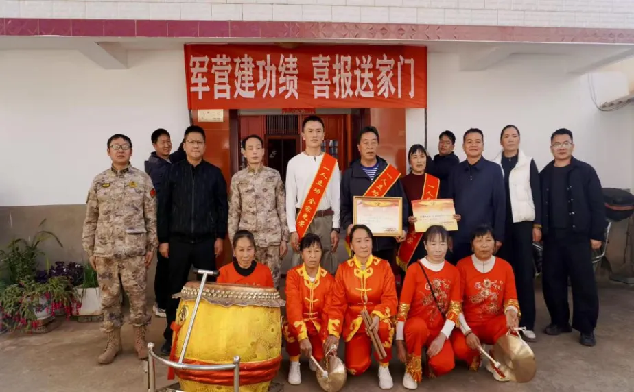 鲁甸县8名现役军人因表现突出、成绩优异,荣立个人三等功。县人武部、县退役军人事务局联合组成报喜团,将立功喜报和慰问金送到军属家中,喜庆锣鼓传递 “一人立功、全家光荣” 的荣耀,充分展现鲁甸儿女献身国防、矢志强军的昂扬风貌。