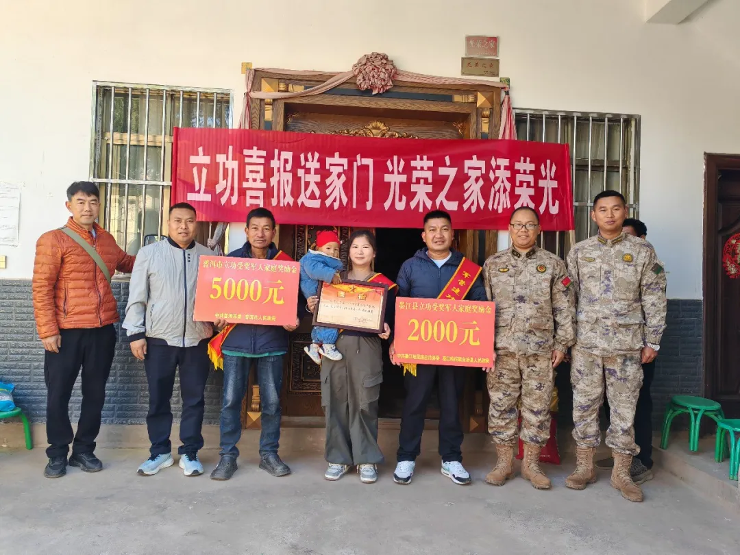 江城县退役军人事务局联合县人武部,先后到嘉禾乡、勐烈镇为4名荣立三等功的现役军人家庭送喜报、送尊崇、送关怀,让“一人立功、全家光荣”的尊崇氛围传遍家乡。