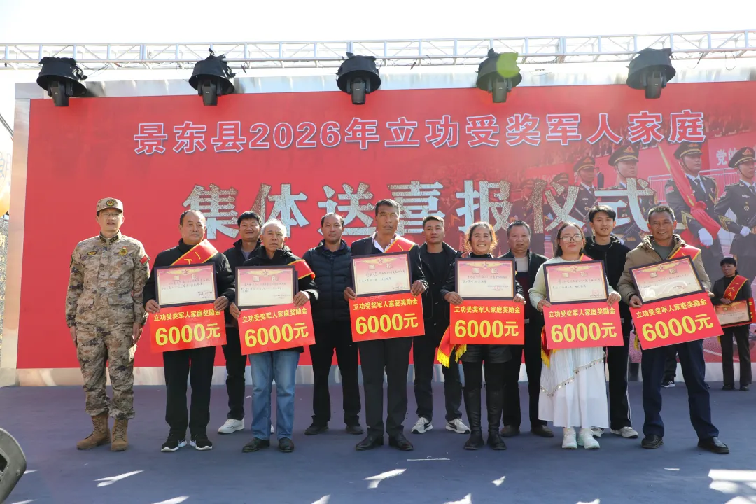 景东县举行立功受奖军人家庭集中送喜报仪式,为20名荣立三等功、1名荣获三级表彰的现役军人家庭集中送达喜报与奖励金。活动邀请立功军人代表及军嫂代表现场发言,分享荣誉背后的坚守付出与家国情怀,充分彰显军人使命担当,大力弘扬拥军优属优良传统,进一步营造“一人立功、全家光荣”的浓厚社会氛围。