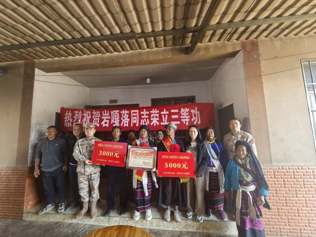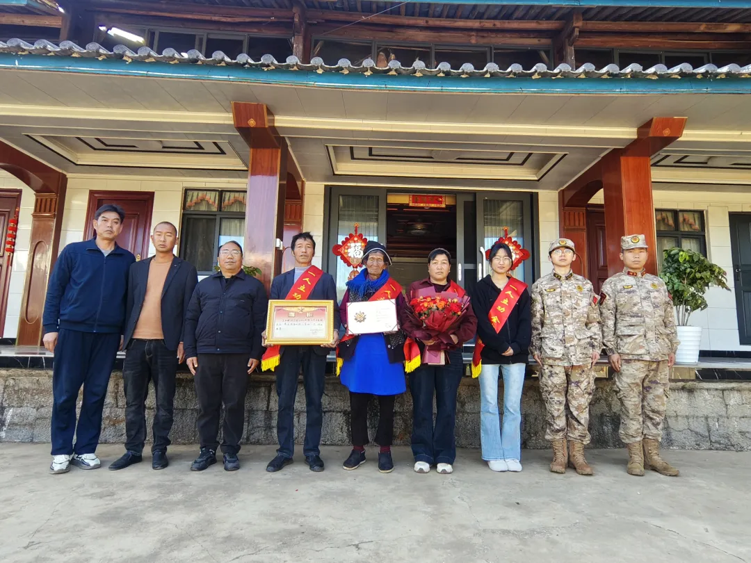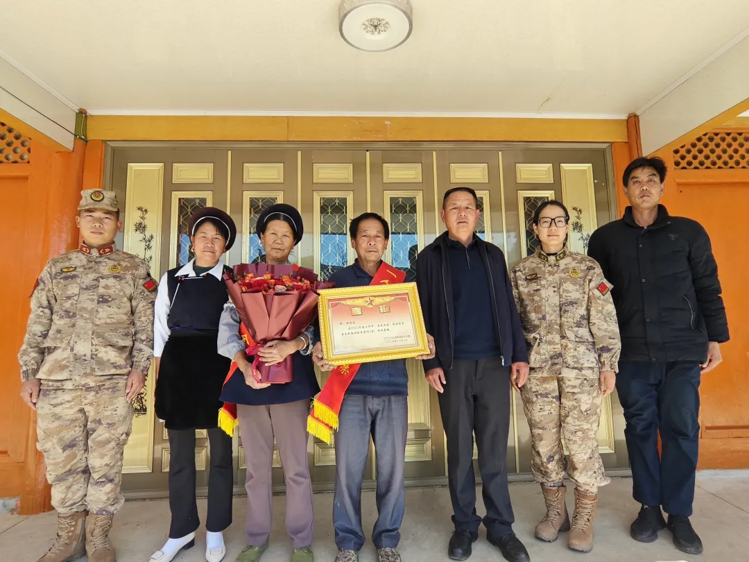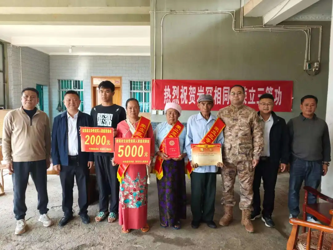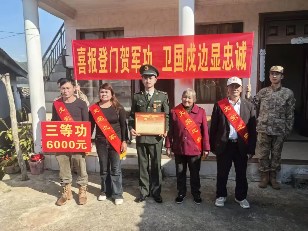 孟连县退役军人事务局联合县人武部赴辖区各村寨,为6位荣立三等功的现役军人家庭送上立功喜报、荣誉绶带与市县两级颁发的奖金,让军营的捷报成为新春佳节最耀眼的“年货”。