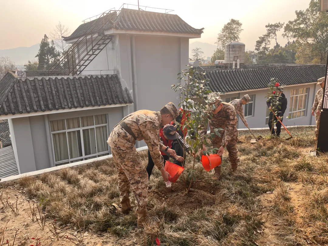 腾冲市退役军人事务局联合驻地部队、市林草局等双拥共建单位,在烈士陵园组织开展军民共建植树活动。现役部队官兵代表、退役军人代表及“极边老兵”志愿服务队志愿者齐聚烈士陵园,以植绿方式缅怀先烈,传承红色基因,共叙鱼水深情。
