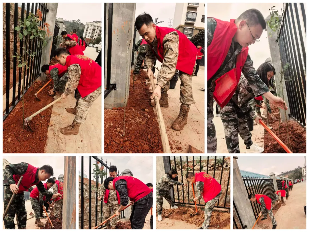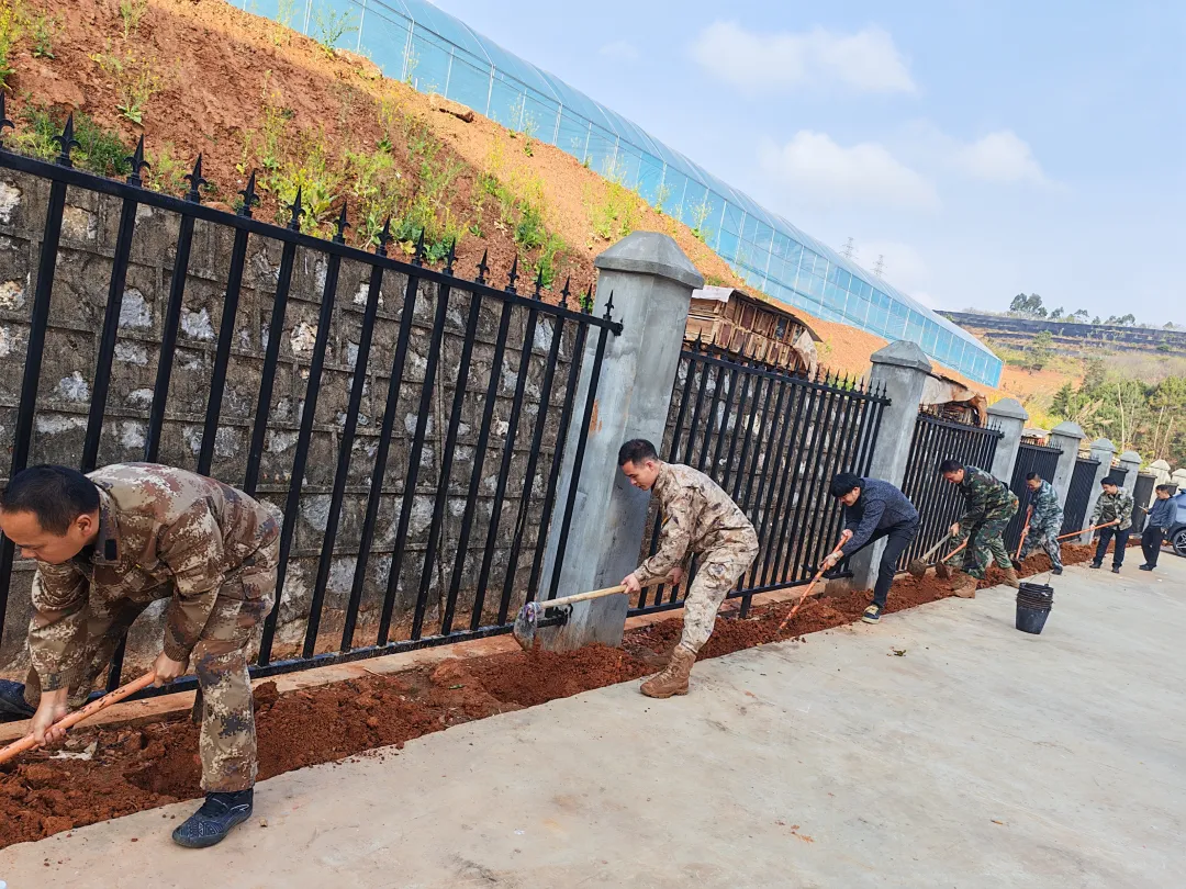 广南县退役军人事务局干部职工携手2026年度符合政府安排工作条件的部分待安置退役军人,赴圆梦社区开展义务植树活动,以实干践行绿色理念,彰显退役军人“退役不褪色、退伍不退志”的责任担当。