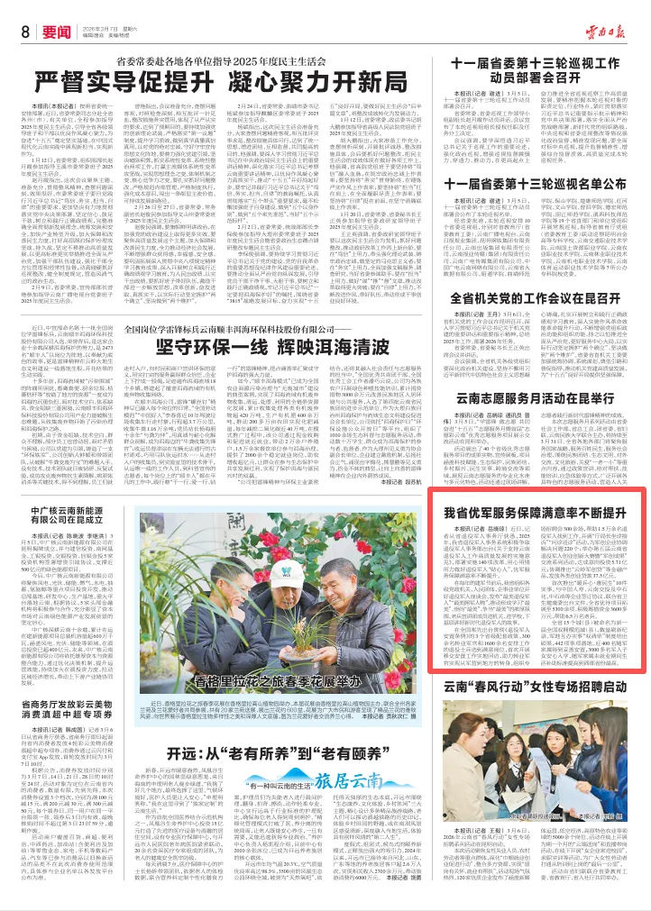 近日,记者从省退役军人事务厅获悉,2025年,我省退役军人事务系统积极争取退役军人事务部出台《关于支持云南退役军人工作高质量发展的实施意见》,部署实施140项改革,用心用情用力做好退役军人“贴心人”,优军服务保障满意率不断提升。