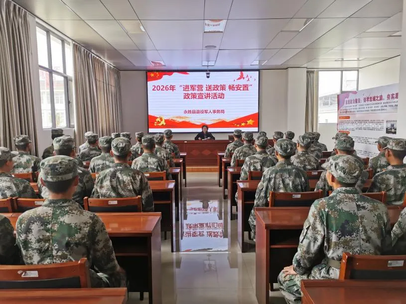 3月16日,永胜县退役军人事务局深入县人武部新兵训练基地,开展“进军营 送政策 畅安置”政策宣讲活动。活动现场,宣讲人员紧扣新兵最关心、最直接的切身利益问题,用通俗易懂的语言、贴近实际的案例,把复杂政策转化为官兵听得懂、用得上的实用指南。一方面,全面解读义务兵家庭优待金发放、医疗保障、家属优待、光荣牌悬挂等现役保障政策,让新兵真切感受到“娘家人”的坚实后方支撑;另一方面,聚焦新兵关切的退役后发展问题,重点讲解退役安置、就业创业扶持、优待证申领、学历提升等退役军人核心利好政策,为新兵未来发展和职业规划提供政策支撑。