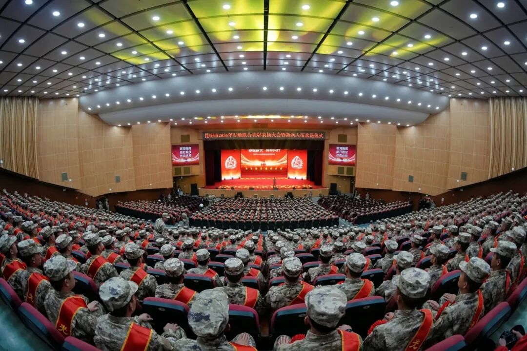 3月19日上午,“春城薪火·榜样同行”昆明市2026年军地联合表彰表扬大会暨上半年新兵入伍欢送仪式在昆明理工大学红土会堂隆重举行。