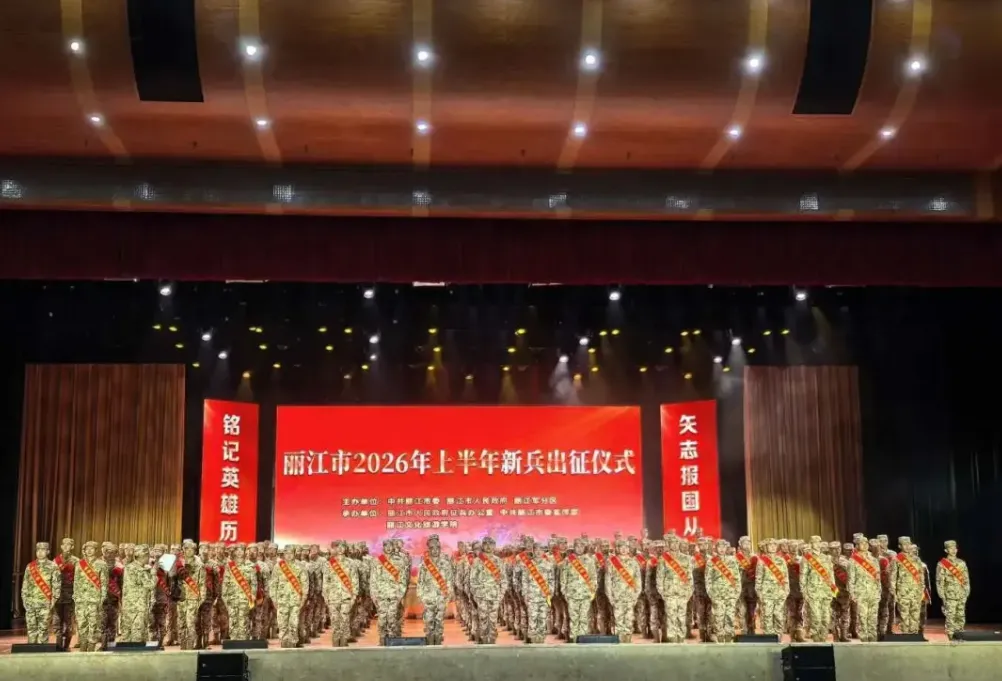 3月19日下午,丽江市退役军人事务局组织40名退役军人代表及系统干部职工,参加丽江市2026年上半年入伍新兵欢送暨红色情景党课《老山》展演活动,通过“老兵送新兵”的形式,深化退役军人思想政治引领,推动红色精神薪火相传。