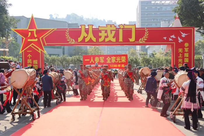 3月19日,迪庆州2026年上半年新兵入伍欢送仪式在“八一爱民学校”纳赤塘小学举行,为即将奔赴军营的优秀青年壮行。