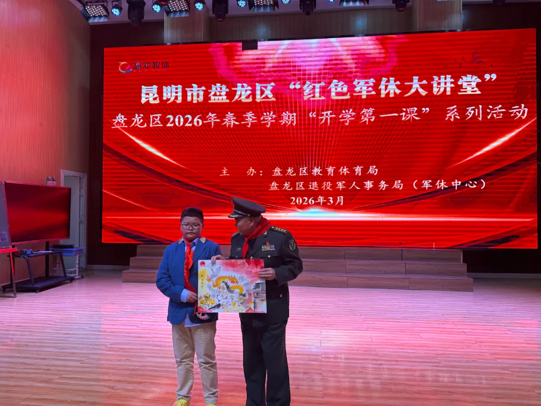 在昆明市盘龙区明通小学的校园里,“红色军休大讲堂”为春季学期点亮了别开生面的“开学第一课”。活动现场,学生代表深情朗读邀请信,老兵宣讲团也用“丹心照汗青”的诗句、以“匹夫有责”的家国情怀诠释初心、解读力量。