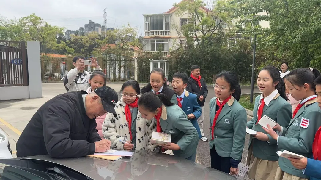 随后,老兵宣讲团成员刘海军政委以自身革命经历为蓝本,用朴实语言和鲜活故事,生动诠释了长征精神的核心内涵。互动环节,孩子们踊跃提问,刘政委耐心解答,孩子们飞奔而来请刘爷爷签名的温馨一幕,成为了“一老一小”红色牵手、精神赓续的最美定格。