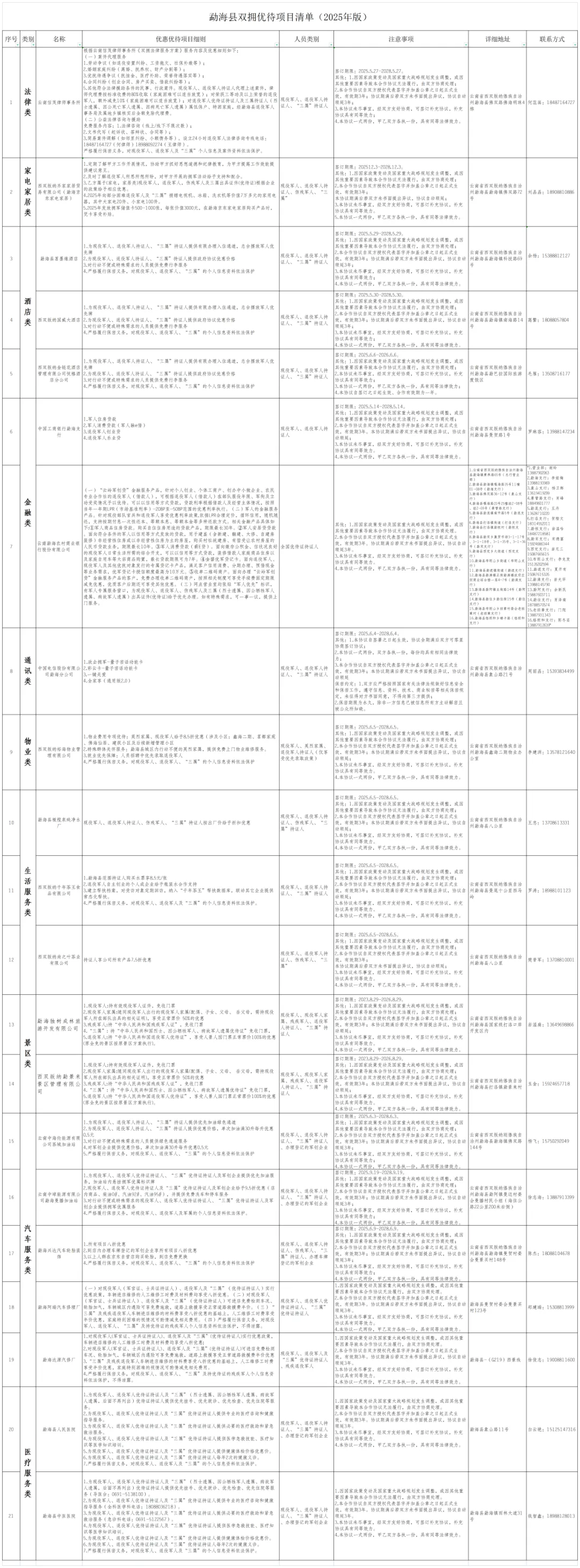 云南省优待项目清单