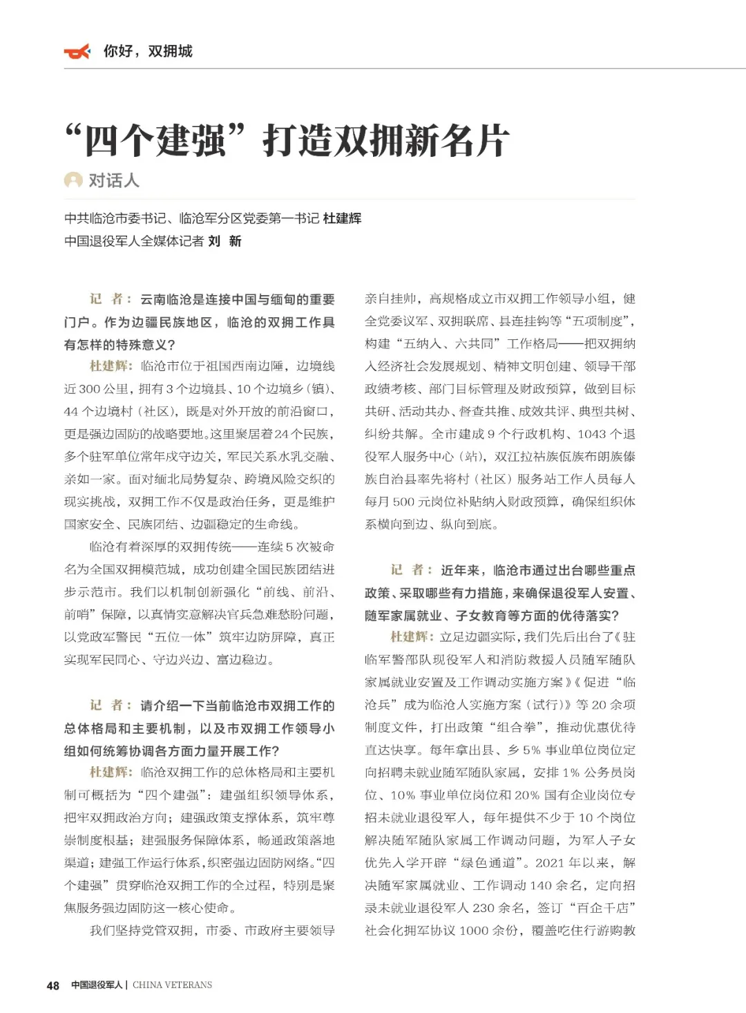 《中国退役军人》专题报道云南双拥、烈士褒扬和退役军人就业创业工作
