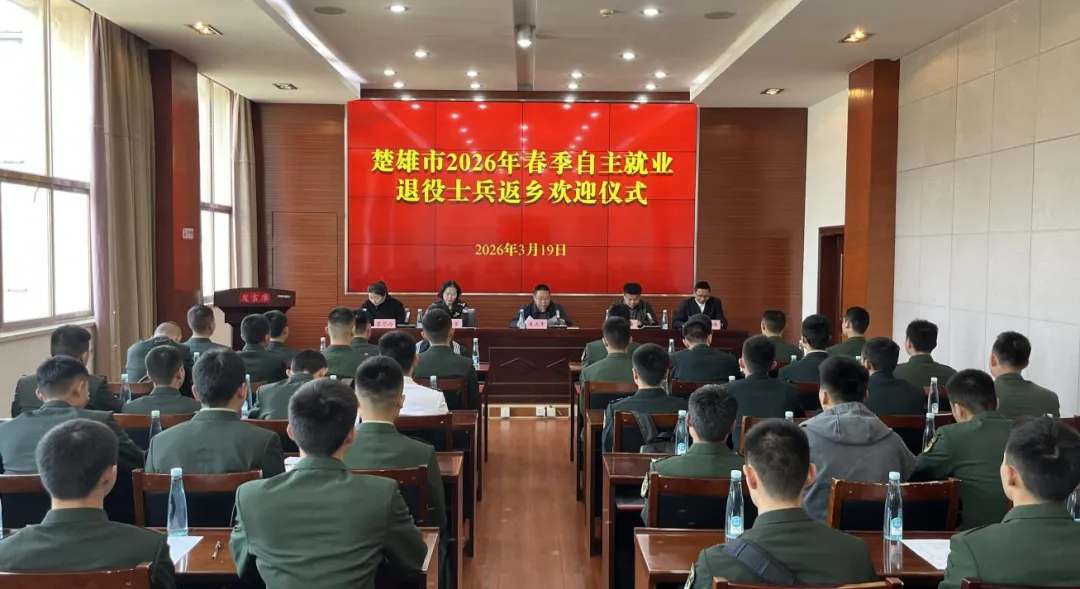 楚雄市举办2026年春季自主就业退役士兵返乡欢迎仪式,让尊崇关爱真正落地见效,不断提升退役军人的获得感、幸福感与荣誉感。 欢迎仪式上,楚雄市退役军人事务局主要负责同志向光荣退役、荣归故里的58名退役士兵,致以最热烈的欢迎和最诚挚的问候,并就安置流程、安置政策、保密工作、安全工作等进行了专题宣讲,积极引导退役士兵提升自身素质,上好退役融入社会的“第一课”。