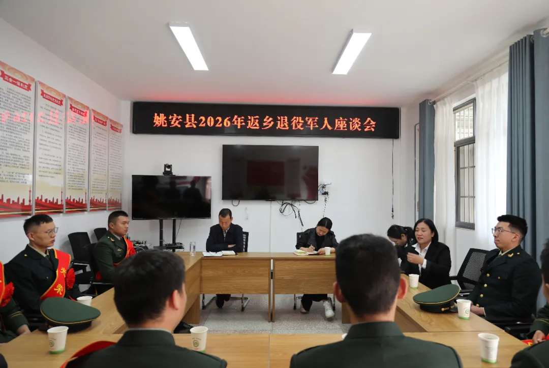 姚安县举办2026年上半年返乡退役军人座谈会。座谈会采用“政策宣讲”+“学习实践”的方式进行,县退役军人事务局就“一件事一次办”、教育培训、就业创业、优待证申领等政策进行了宣讲解读。组织19名返乡退役军人到军创企业、退役军人就业创业孵化基地进行学习实践活动。