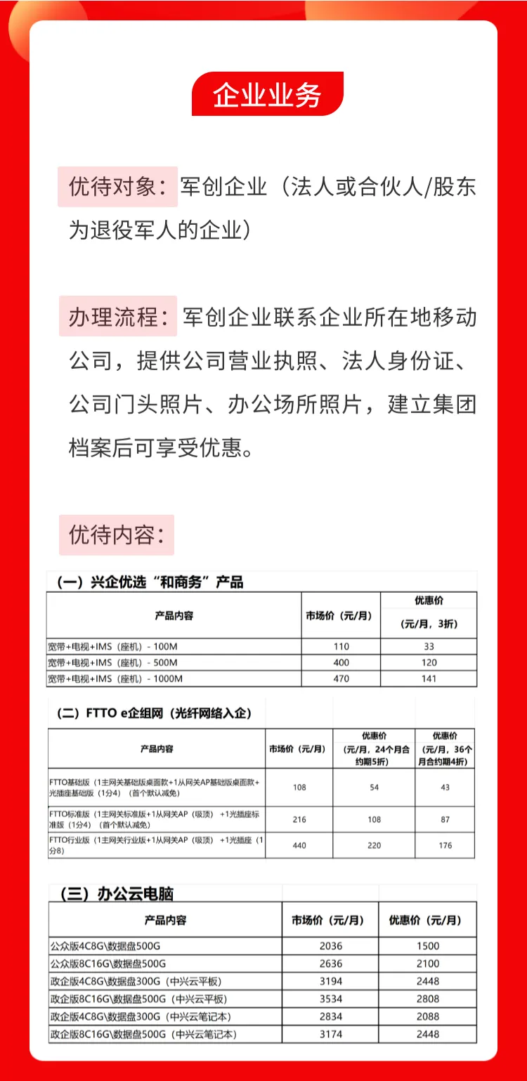 和其他优抚对象提供以下专属优惠