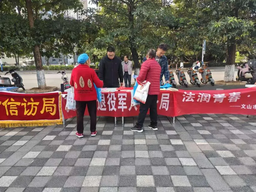 近日,文山市退役军人事务局采取多种形式开展2026年“三月法治宣传月”宣传活动。组织干部职工集中学习《中华人民共和国退役军人保障法》等法律法规,在国家安全公园设点发放宣传资料200份,并深入挂钩社区入户开展未成年人法治宣传教育。