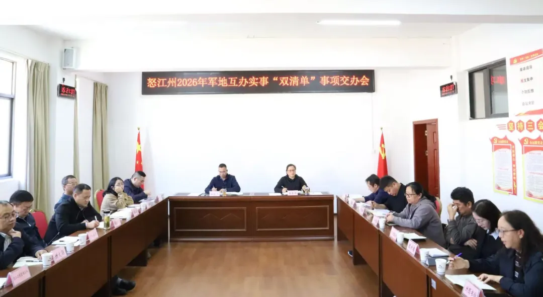 近期,怒江州组织召开2026年度州级军地互办实事“双清单”事项交办会暨随军家属转任调配协调会。各“双清单”事项落实主体单位现场认领任务,并逐一作表态发言,表示将严格按照职责分工,强化协同配合,确保各项任务落地见效。