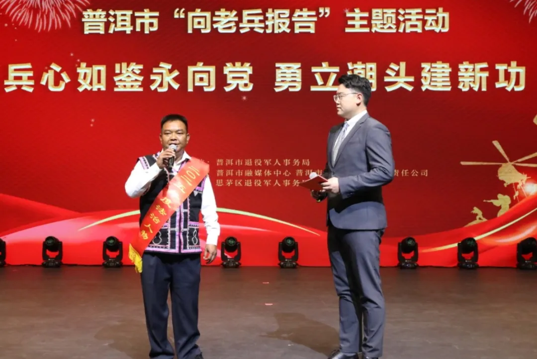 春暖茶城,双拥情深。3月26日,普洱市隆重举办“兵心如鉴永向党 勇立潮头建新功——向老兵报告”主题活动,220余名退役军人模范代表、军创企业家代表、优抚对象代表、驻普部队官兵、军烈属等代表和全市退役军人事务系统全体干部职工、各相关单位负责人齐聚一堂,共赴这场满载敬意与温情的盛会。活动向老兵汇报退役军人事务系统用心用情用力推进的十件实事成效,用行动回应期盼,用尊崇凝聚力量。